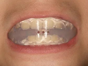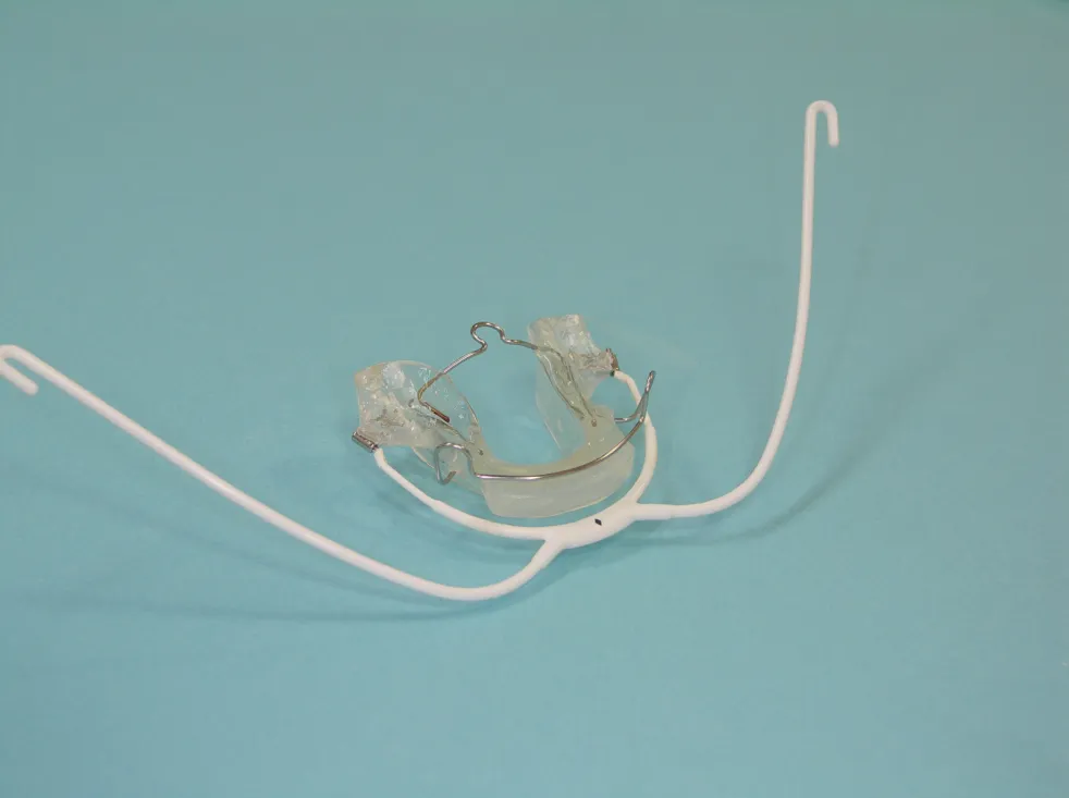 *就寝時に使用するモノブロック装置(筋機能的咬合誘導装置)