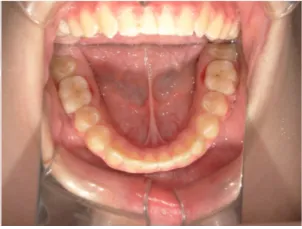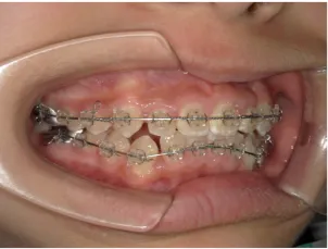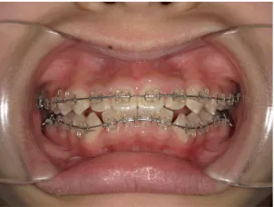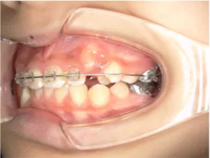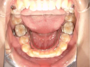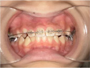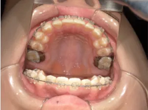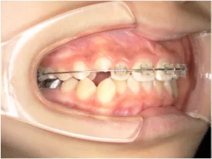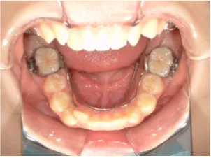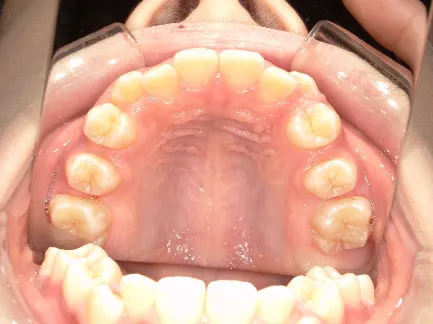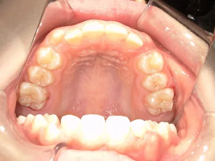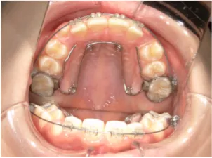 治療中③中1:非抜歯治療の診断で、上顎に歯の生えるスペースをつくるため上顎左右6をプレートで遠心移動し、隙間ができた時点