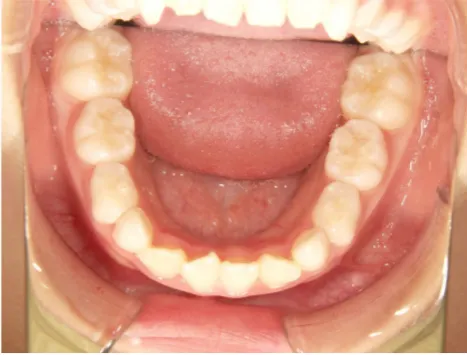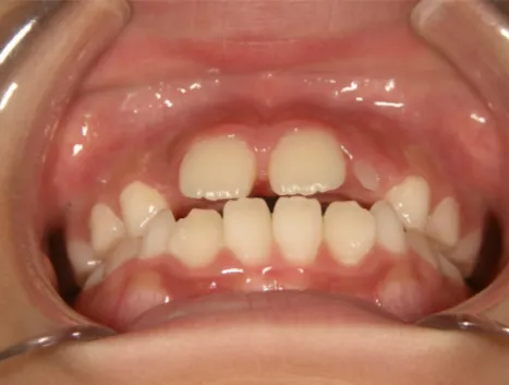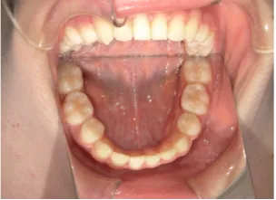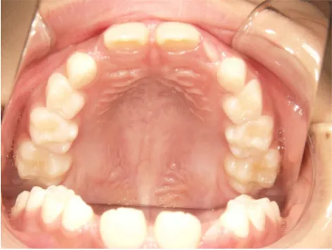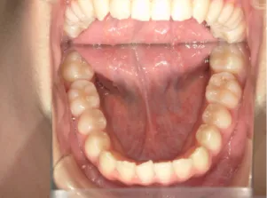 | カウンセリング・診断結果 | 前歯が受け口になっていているため、適正な成長へ誘導するために前歯の咬み合わせの改善が必要なことを説明し、診断を希望されたので精密検査へ進みました。 精密検査の結果、骨格的には受け口傾向、下顎前歯の突出、上下ともアーチが小さく凸凹(叢生)が認められ、機能的には低位舌と口唇閉鎖不全があり、口元は上下唇とも突出していますがコンケーブになってないことがわかりました。 |