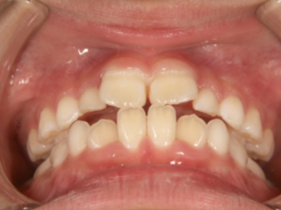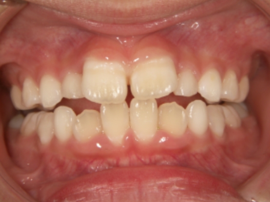 小1女子、前歯が受け口で生え変わってきた受け口治療