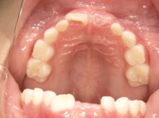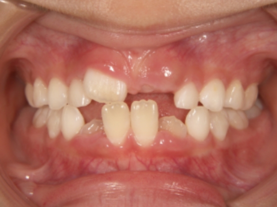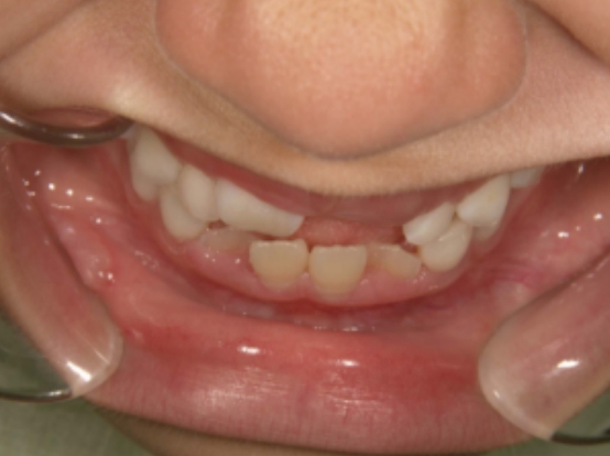 小1女子、前歯が受け口で生え変わってきた受け口治療
