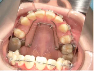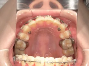 治療中④犬歯移動後、前歯4本を後方へ動かして隙間を閉じます *高1:前歯4本の後方移動