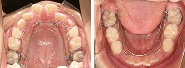 | 2.リテーナーで生え変わり待ち | 2.モノブロック装置による咬合誘導 |